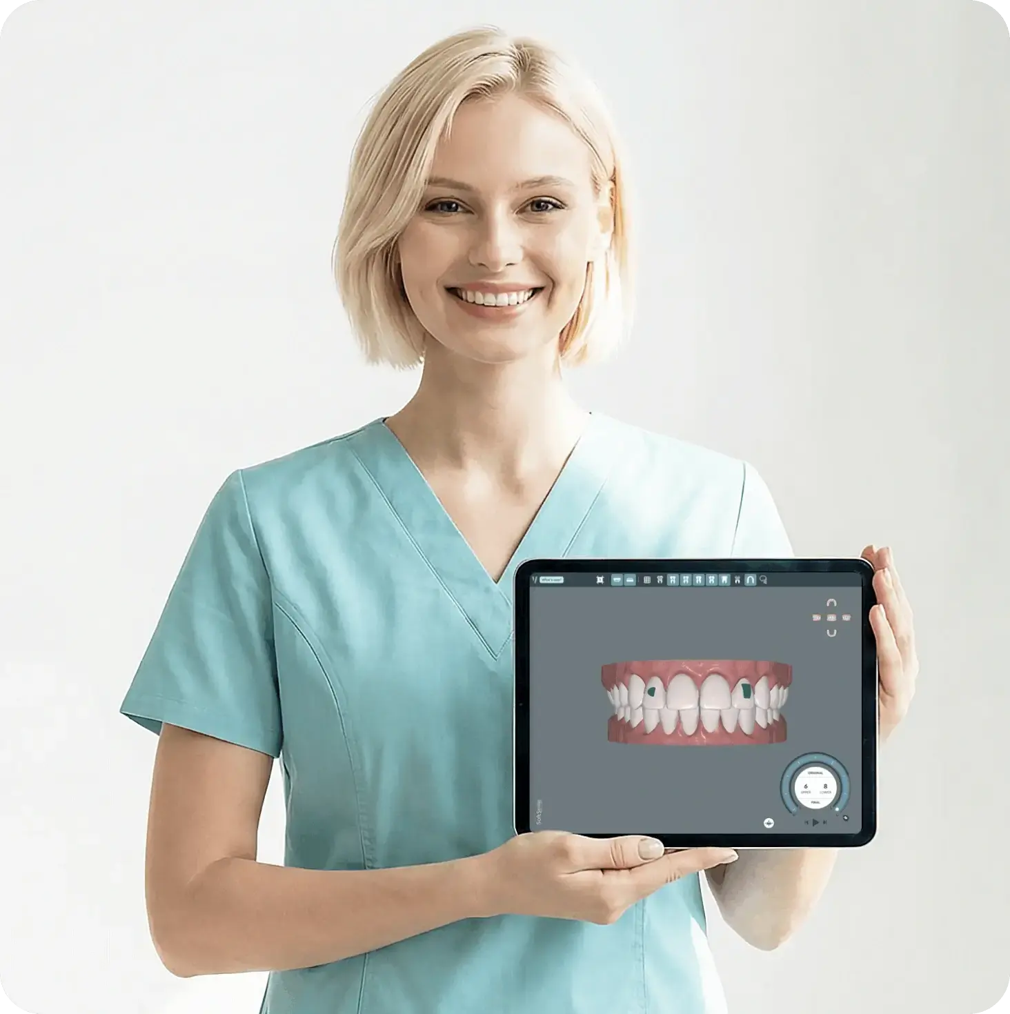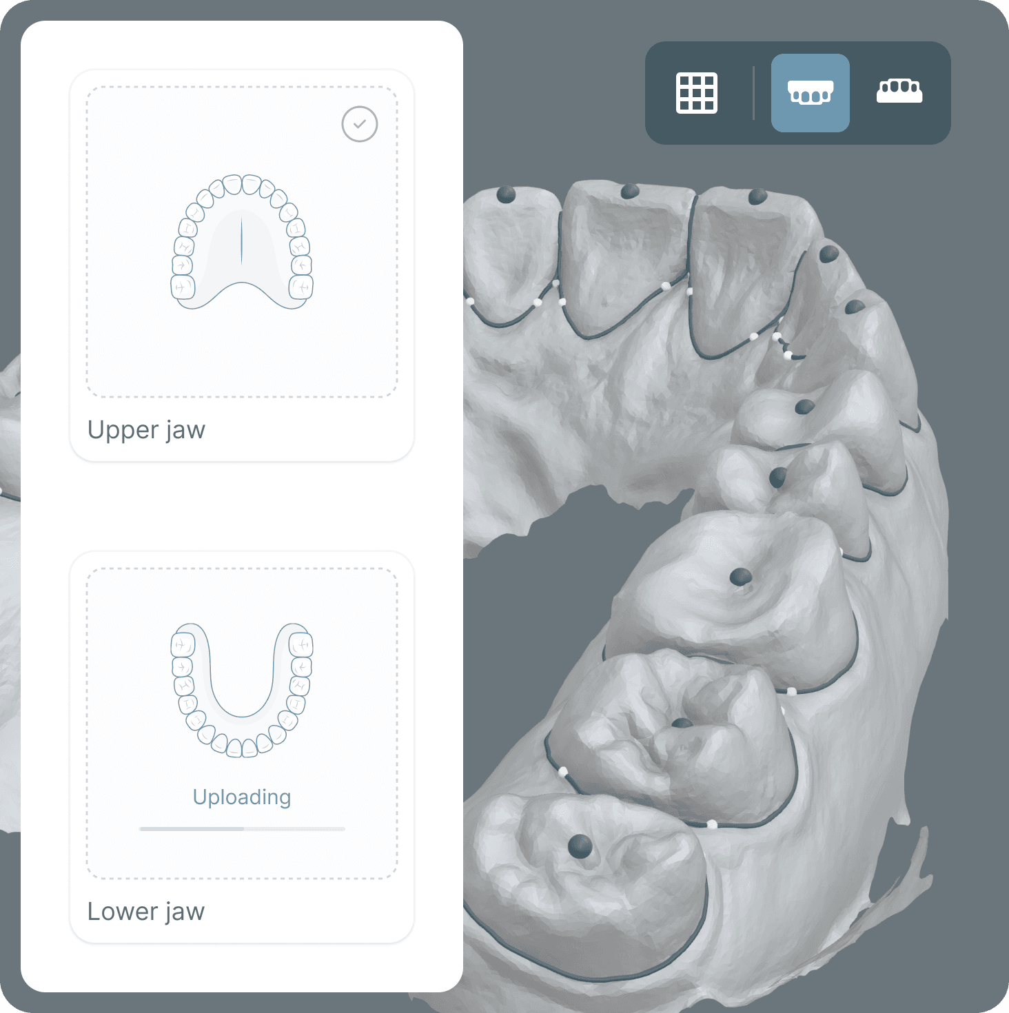 Just upload your patient information and scans, and the system automatically segments teeth, removes artifacts, and aligns the scan — giving you a perfect foundation to work with.