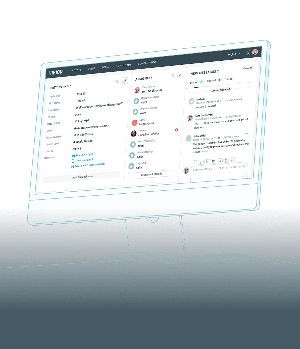 Yes. With VISION, doctors can adjust final tooth positions directly in the portal and submit changes for replanning. Staging adjustments can be requested through comments, with our advanced staging engine recalculating precise results for the next revision.